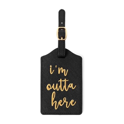 I’m Outta Here Embroidered Leather Luggage Tag details about it are given below: